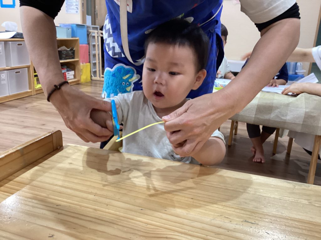 2歳児さん、初めてのハサミ☆