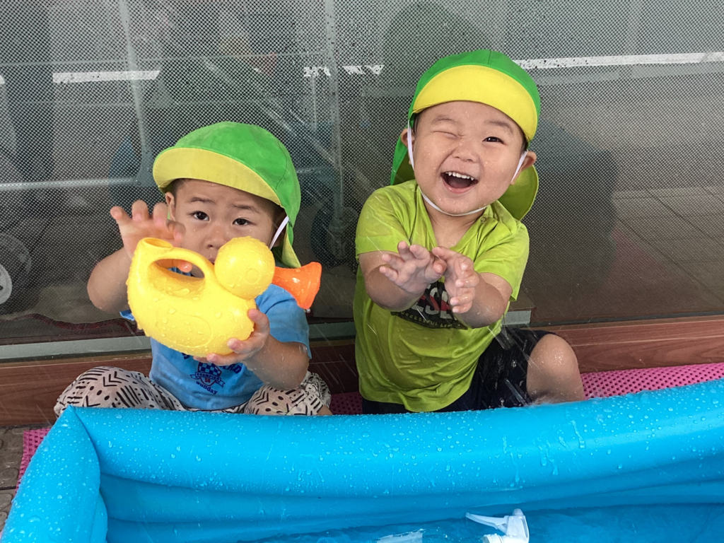 子どもたちの大好きな水遊びが始まりましたよ~✨