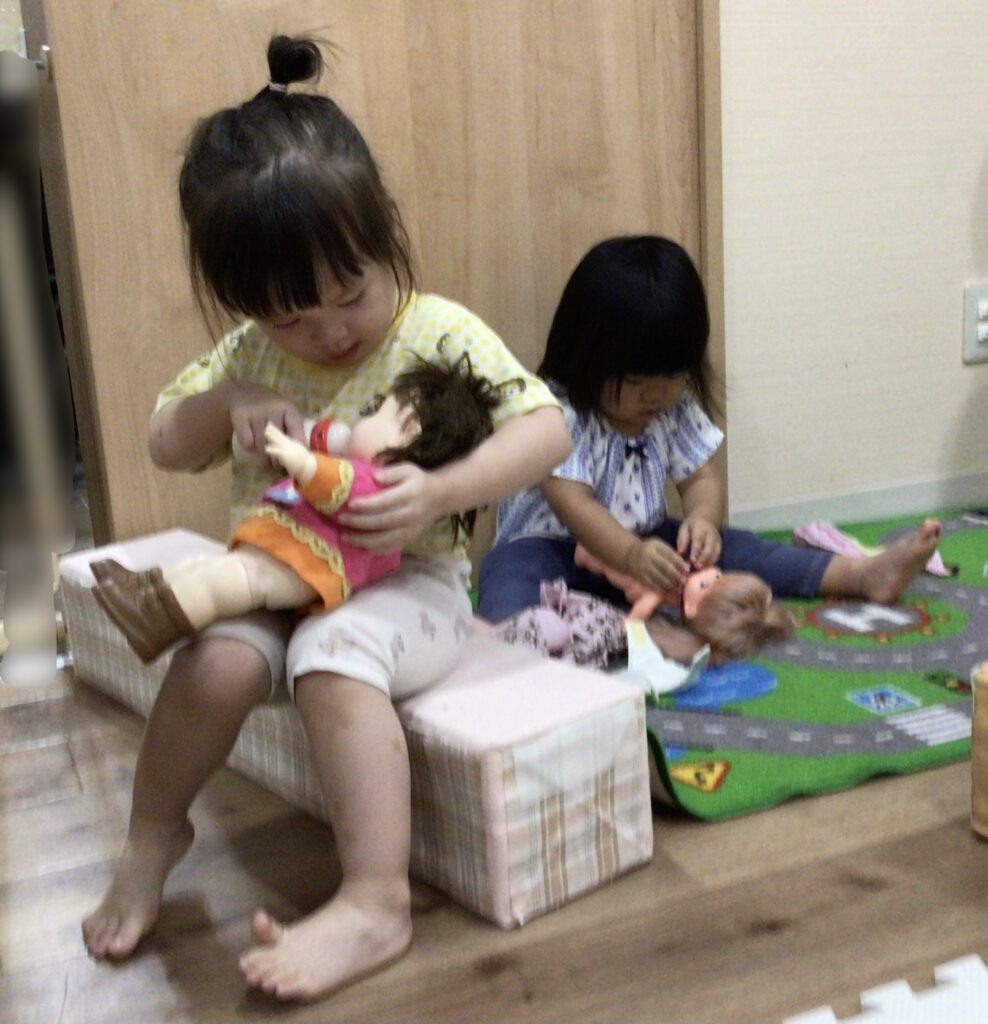 お世話遊びのなかには、子どもたち自身が経験したこと、こんな風にして欲しいなと思っていることなどがあふれています。優しさや思いやりの気持ちが表れているのを感じます。