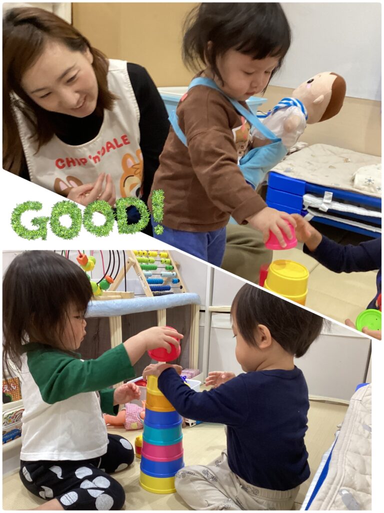 自分の好きな遊びを見つけながら、大好きな大人と一緒に安心できる空間の中で過ごしています。